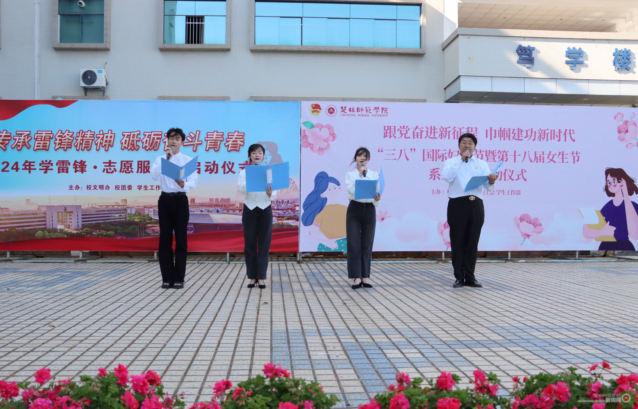 仪式上,同时举行了“三八”国际妇女节暨第十八届女生节系列活动启动仪式。施红星代表学校党委向全校女性师生致以最诚挚的节日问候,希望全校女性师生一如既往展现好教育事业参与者、文明风尚倡导者、敢于追梦奋斗者的新时代女性风采,为建设教师教育特色鲜明的高水平应用型大学谱写新时代“半边天”的绚丽华章。学生社团部副主席、马克思主义学院女生代表陈菲发言,激励全校女生发扬女排精神,以优秀学姐为榜样,成为“自尊、自信、自立、自强”的新时代女性。
