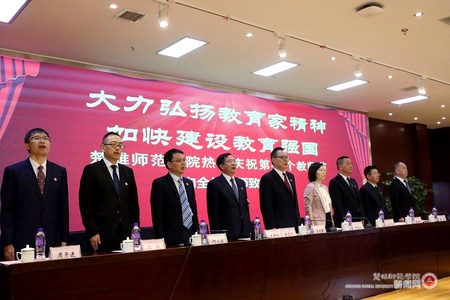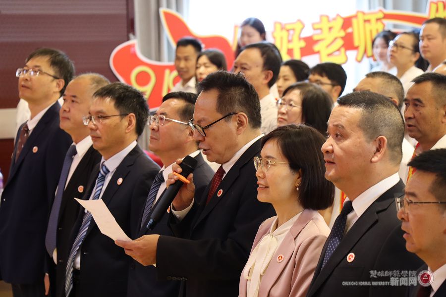 最后,王建雄在讲话中就“弘扬教育家精神,楚师教师何为”这个问题,用四个“第一”与大家共勉。一要把坚定理想信念作为“第一使命”。心中有信仰,脚下才有力量。全体教职工要坚定理想信念,认清肩负的使命和责任,抱着“捧着一颗心来,不带半根草去”的精神,以赤诚之心、奉献之心、仁爱之心投身教育事业,为学生把好人生的“总开关”,扣好“人生的第一粒扣子”,在以中国式现代化全面推进强国建设、民族复兴伟业进程中,勇担培根铸魂育新人的使命。二要把教育家精神作为“第一追求”。教育家精神是中华民族源远流长的传统师道文化的凝练,弘扬教育家精神是一个循序渐进、不断升华的过程,全体教职工要持续深入学习领会并认真践行教育家精神,从自身做起、从小事做起,要持之以恒、久久为功。三要把师德师风作为“第一标准”。全校上下要全面落实新时代教师职业行为准则,完善师德违规处理制度规定,落实教职员工准入和从业禁止制度,在教师聘用中严格把关,将师德表现作为教师资格准入、招聘引进、职称评聘、导师遴选、评先选优、项目申报等首要要求。全体教职员工要严以修身,自觉坚守精神家园,以自己特有的人格魅力影响学生,当好学生健康成长的指导者和引路人。以赤诚之心、奉献之心、仁爱之心投身教育事业,做到以德立身、以德立学、以德施教,以自己的人格品质和模范行为影响和带动学生。四要把转变作风作为“第一要务”。作风建设是一项永无止境的工作,只有进行时,没有完成时。转变工作作风,大力倡导“有为才有位、有位必有为、优进劣退、善为者上、不善为者下”的导向。广大教职员工要提振精神、敢于担当、真抓实干、潜心治学、开拓创新,以高水平的教学、科研、管理、服务,支撑学校高质量发展。