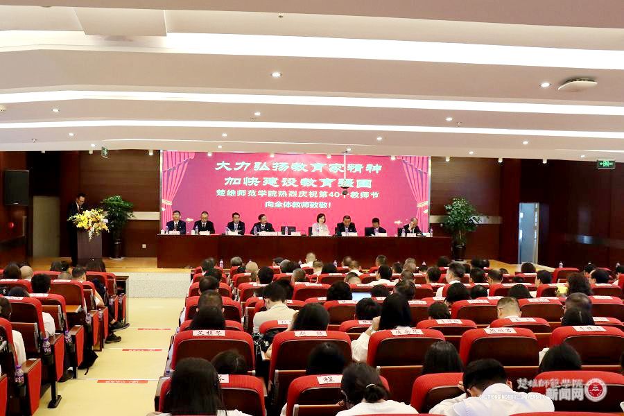 丹桂迎秋,杏坛飘香。在洋溢着丰收喜悦的九月,我们迎来了第40个教师节。9月10日下午,学校在教师进修综合楼第一报告厅举行2024年教师节庆祝大会。大会举行了2024年新教师入职宣誓、表彰了2023-2024学年学校涌现出来的各类先进教师、举行了荣退仪式,教育引导广大教师以教育家精神为指引,以更加饱满的热情、更加坚定的信念,承担起为中国式现代化立德树人的时代重任,同心共筑教育事业发展的新篇章。学校党委书记王建雄、校长杨桂红出席会议并讲话。会议由党委副书记杨宏仁主持。