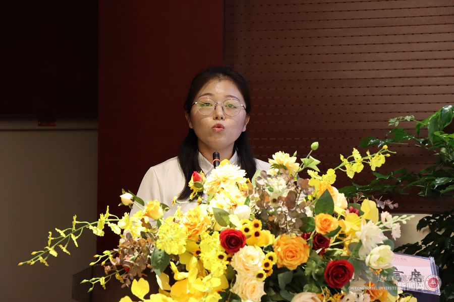 雷江楠同学在发言中代表广大学生对老师们的辛勤付出和无私奉献表示感谢,他表示,作为未来的人民教师,会勤于修身、苦练内功,铭记学校老师们的教诲,用心去关爱每一个学生,用责任去对待每一堂课,用实际行动诠释人民教师这一光荣称号的深刻内涵,为教育强国建设和实现中华民族伟大复兴贡献自己的青春力量。