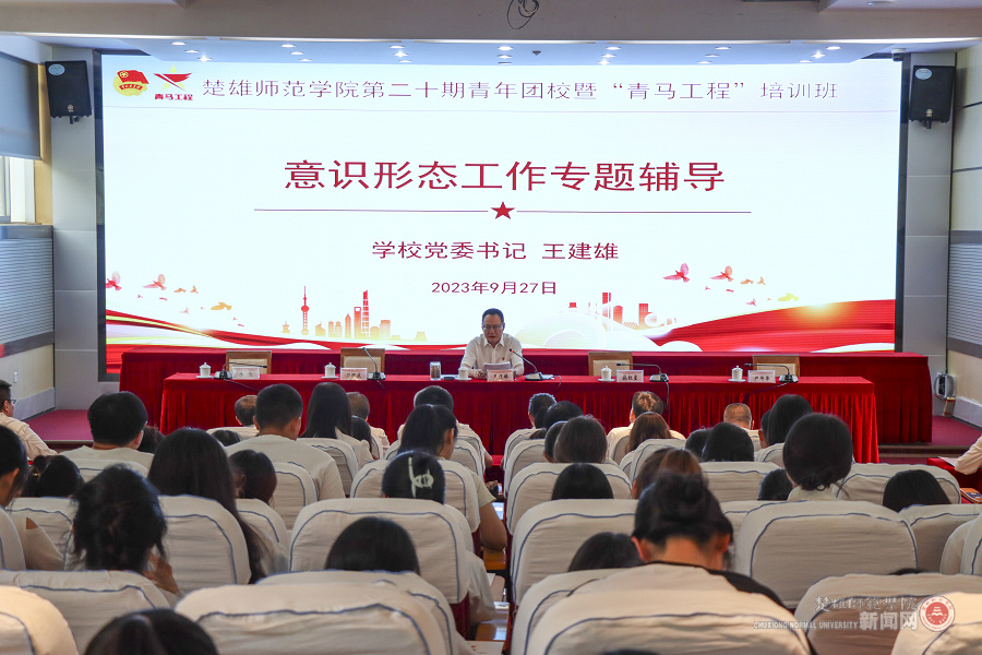 9月27日下午,学校第二十期青年团校暨“青年马克思主义者培养工程”开班仪式在信息中心第一报告厅举行,开班仪式结束后,学校党委书记王建雄讲授开班第一课。王建雄作题为《精业专术 勠力躬行 抓实新时代基层意识形态工作》专题辅导,各学院分管学生工作的副书记,团委书记、副书记,班主任代表,2023年新入职辅导员及辅导员代表,校团委全体人员,校院学生会、学生社团主要负责人,2023年新发展的团员参加学习。开班第一课由党委委员、宣传部部长、统战部部长刁国庆主持。