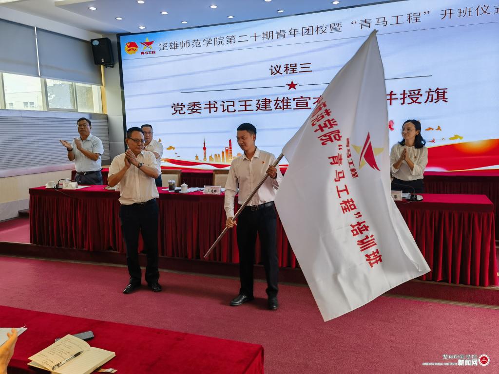 随后,王建雄宣布第二十期青年团校暨“青年马克思主义者培养工程”开班并为培训班授旗。