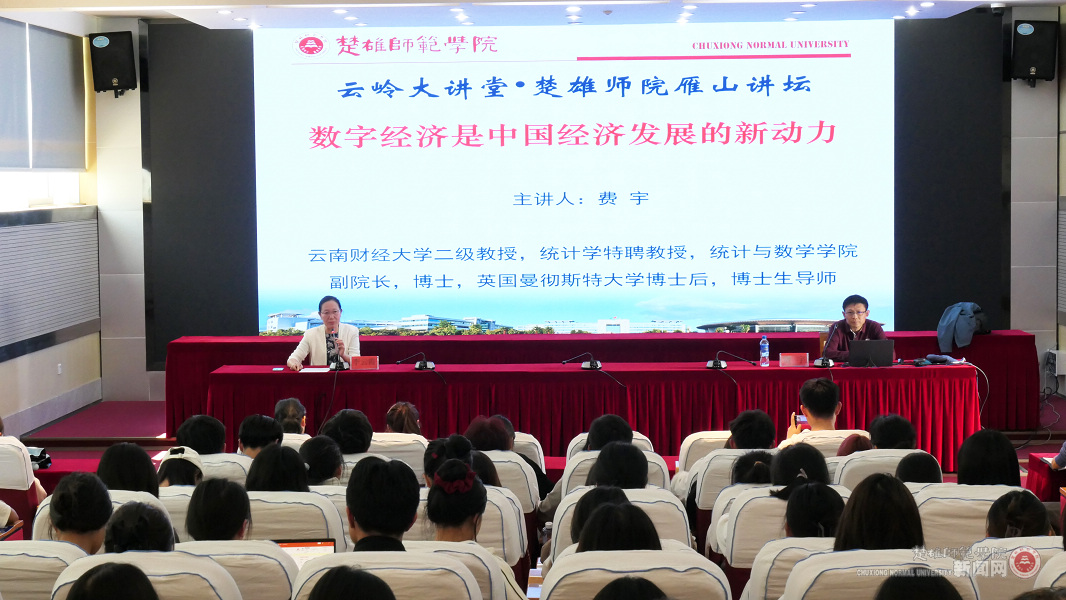 10月19日,我校在信息楼第一报告厅举行“云岭大讲堂·楚雄师院雁山讲坛”第84期学术活动,特邀云南财经大学二级教授费宇作题为“数字经济是中国经济发展的新动力”的专题报告。讲坛活动由中共云南省委宣传部、云南省社科联主办,学校党委宣传部、统战部、校社科联(科技处)承办,数计学院、管经学院协办。本次活动由数计学院院长李云霞教授主持,数计学院、管经学院约200名师生参加此次“云岭大讲堂”学术活动。