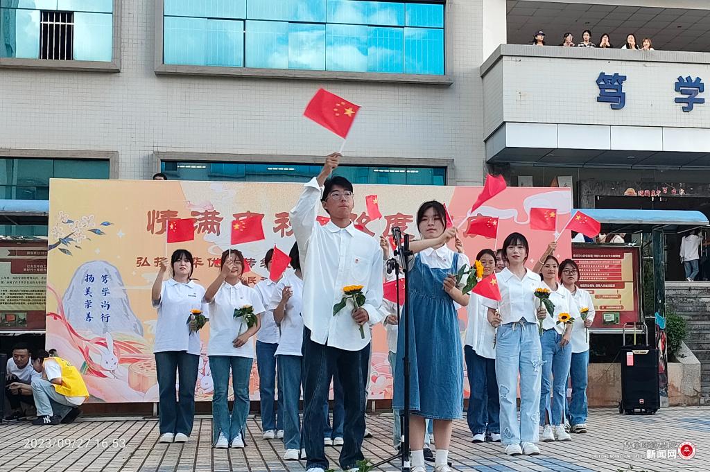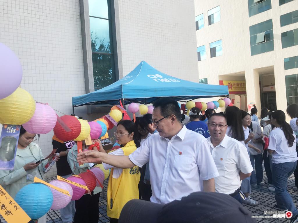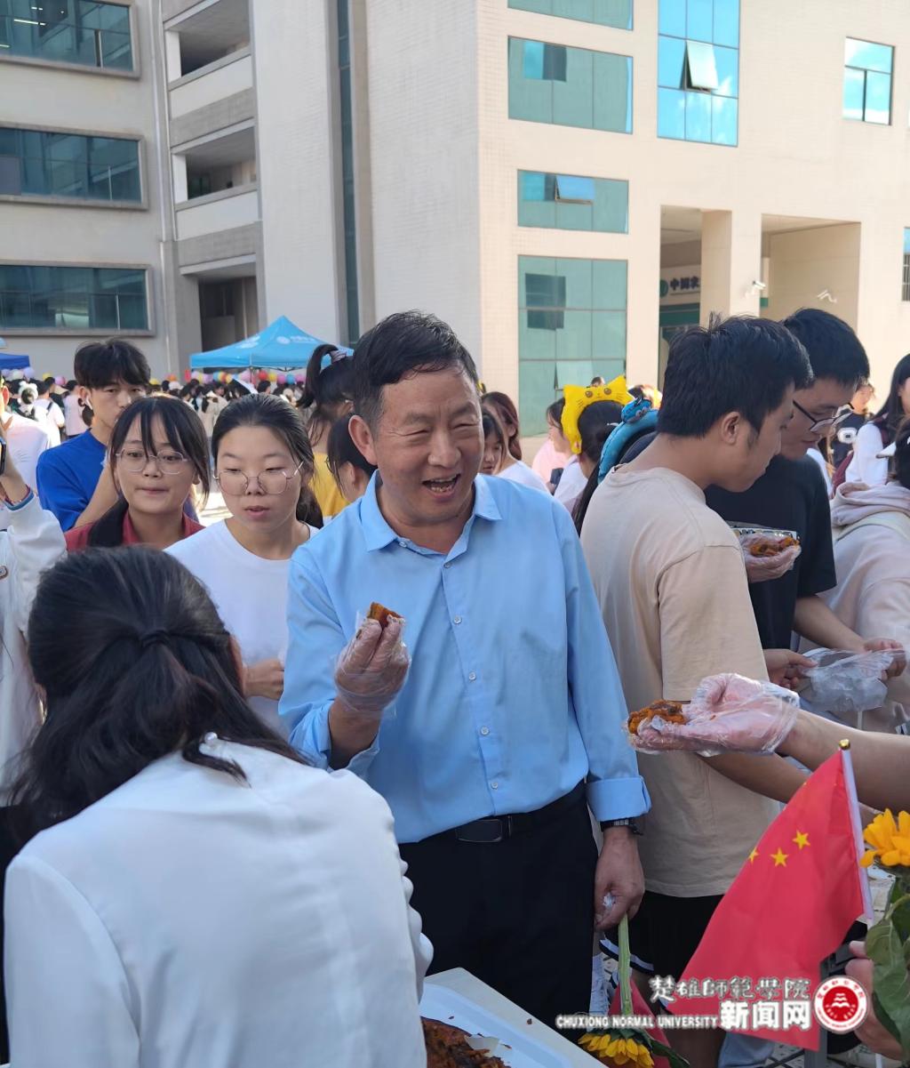 2023年的中秋国庆“喜相逢”,9月27日下午,由统战部、校团委、后勤总务部、学生工作部主办的“情满中秋 欢度国庆”双节同庆系列活动在花果山校区凯旋门大榕树旁拉开序幕。学校党委书记王建雄,党委副书记李正武、施红星,副校长陆华,党委委员、宣传部部长、统战部部长刁国庆与师生一起参加双节同庆系列活动。