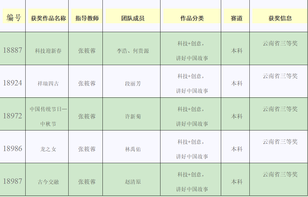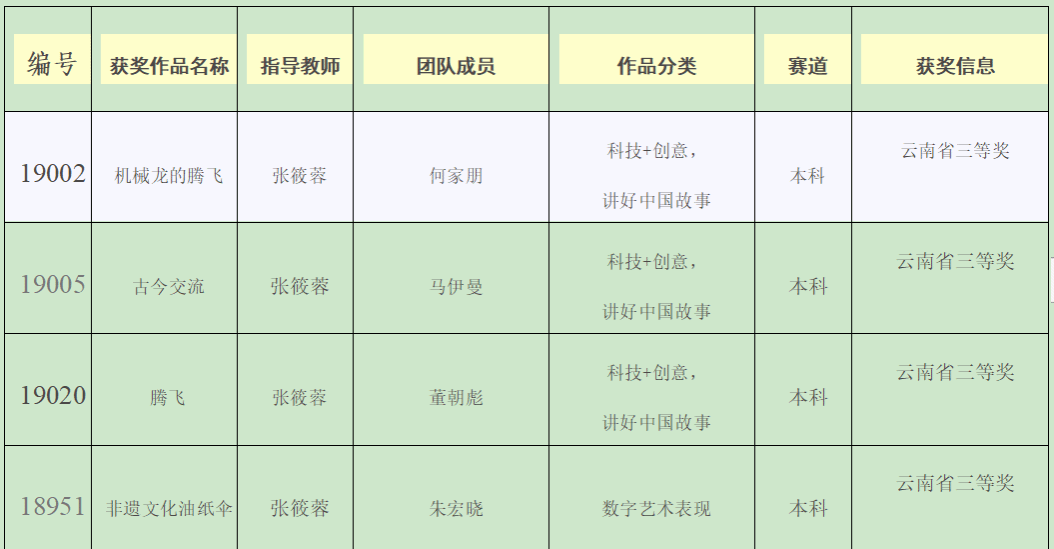 楚雄师范学院参加在第十一届全国大学生数字媒体科技作品及创意竞赛(云南省省赛)获奖作品公示名单: