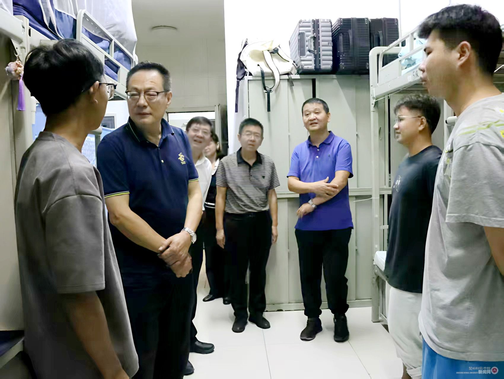 为确保2025年秋季学期开学各项工作平稳有序进行,全面保障新生入学及校园安全落实到位,做好重要保障期校园安全稳定工作,8月31日,校党委书记王建雄、校长杨桂红分别带队对雁塔校区和花果山校区开展全方位安全检查,并深入学生社区看望2025级新生,了解新生入学适应情况。各分管校领导和相关职能部门负责人参加检查。